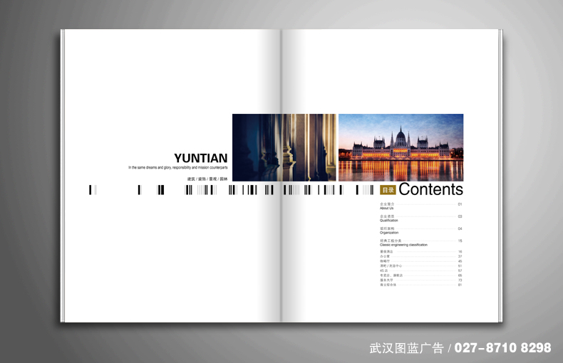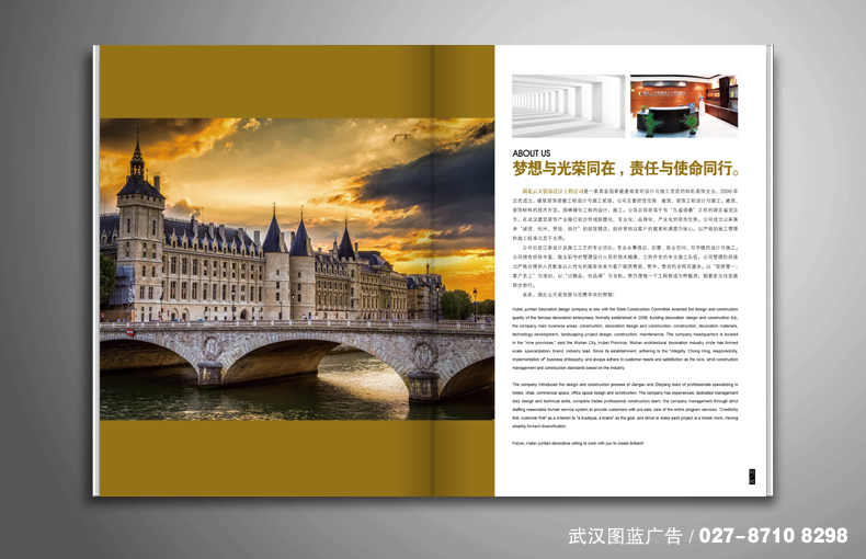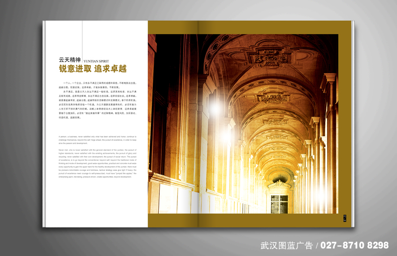 畫冊設計解決方案:在畫冊設計的開始,就要進行策劃,內容如何布局,前后邏輯關系如何呈現,重點表面哪些點?通過對該行業的市場分析,著重把企業的優勢和設備展示出來,通過核心技術、專家團隊來體現出企業的實力。在設計風格上,武漢畫冊設計師進行了大膽的創意,用暗金色系和精致的文字編排形成視覺上的對比,用這種充滿對比性的表現手法突出了工程的特性,但又提升了企業的形象。